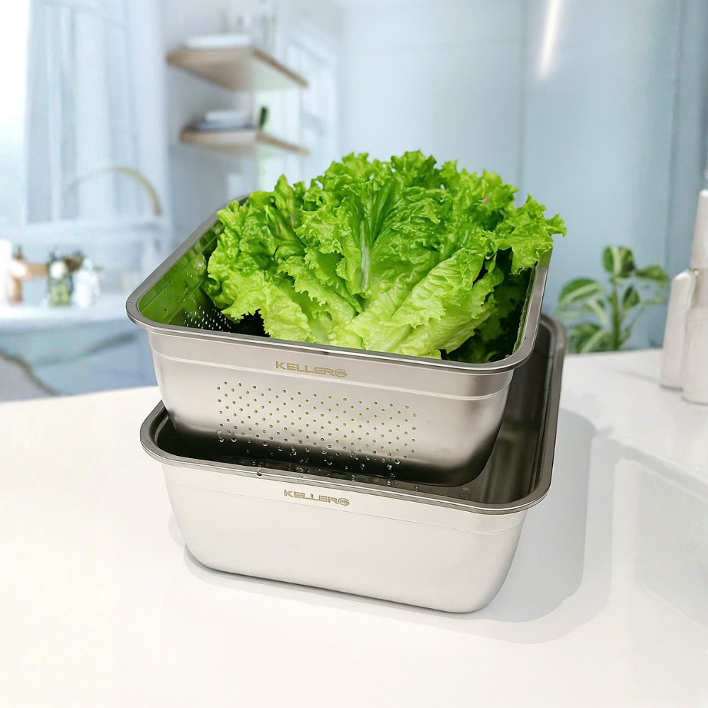 Bộ chậu và rổ inox Keller@ không chỉ tiện dụng và bền bỉ, mà còn là giải pháp vệ sinh hoàn hảo cho gia đình bạn, giúp việc bếp núc trở nên nhanh chóng, gọn gàng và an toàn hơn bao giờ hết.