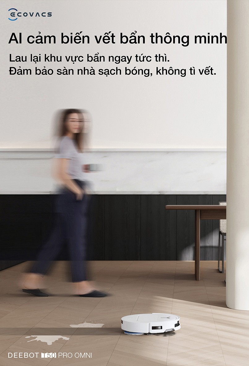 Nhờ các cảm biến hiện đại, robot hút bụi T50 Pro Omni có thể phát hiện những khu vực có nhiều vết bẩn chẳng hạn như những nơi thường xuyên có vệt chân, thức ăn rơi vãi hay lông thú cưng. Khi phát hiện vết bẩn, thiết bị sẽ di chuyển đến đúng vị trí lau lại sàn, tự động tăng cường lực hút, lượng nước phun ra để tăng hiệu quả làm sạch.