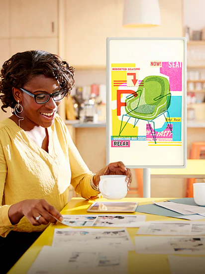 Nhiều tùy chọn điều chỉnh, bao gồm xoay lên đến 180°, quay 130°, nghiêng 50° và điều chỉnh độ cao 20 cm, cho phép bạn xem thoải mái từ mọi vị trí với StanbyME.