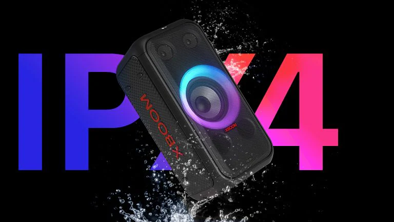LG XBOOM XL5S đáp ứng xếp hạng về tiều chuẩn Chống nước IPX4 và có thể chịu được giọt nước bắn.