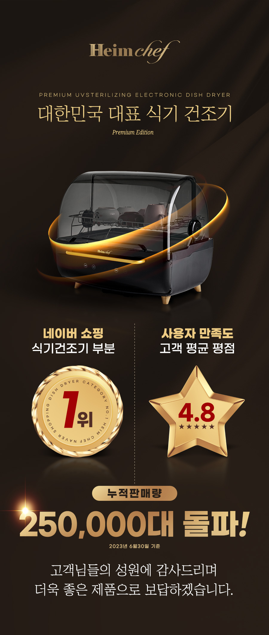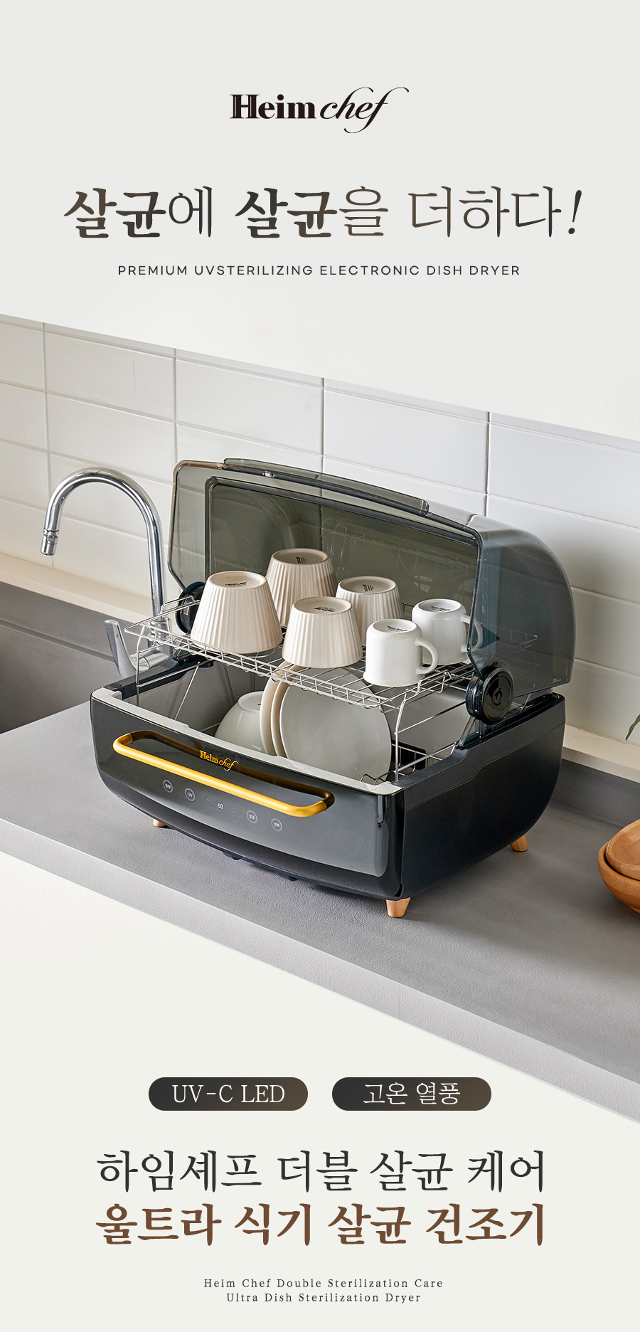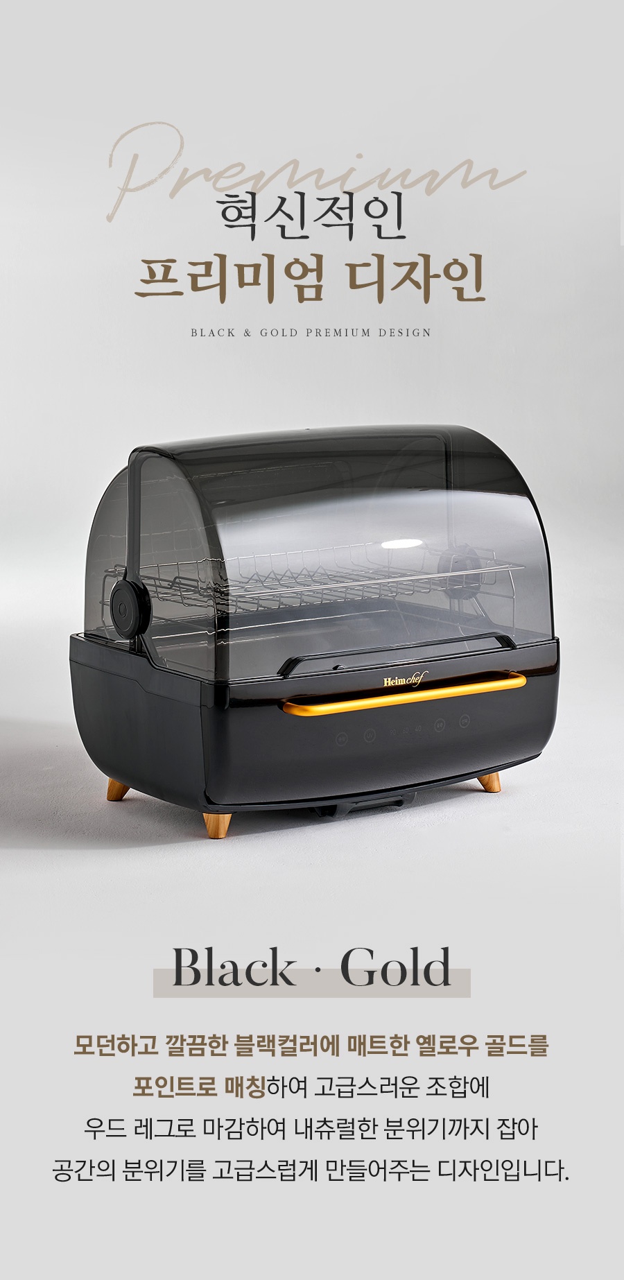 Ultra 70L Black & Gold UV + Hot Air Sterilization Voice-Guided Dish Dryer